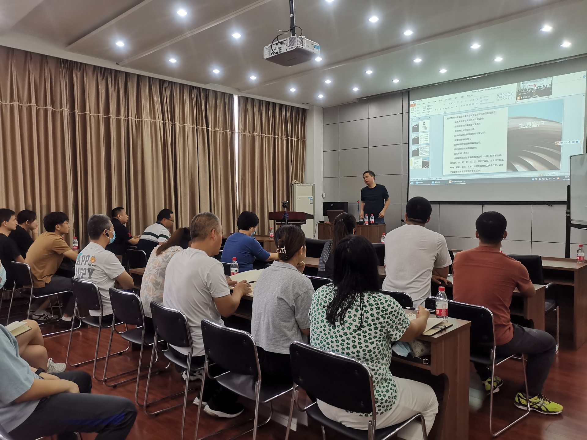 培訓前物資質量部部長曹國巍介紹了齊永合老師的工作履歷,以及大陸航星在企業管理模式設計、人力資源體系中薪酬和績效、營銷、生產管理、資本經營等領域的成功培訓經驗。