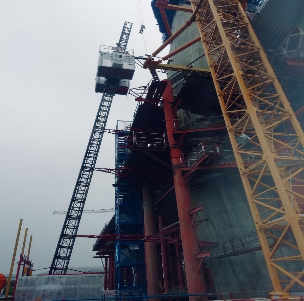 近日,廊坊凱博建設機械科技有限公司生產的斜、直線兩用施工升降機順利投入到廣東佛山“三水三橋”項目。此類型升降機承重架和吊籠經過特殊設計,角度變化范圍為0~15°,在不增加任何部件的情況下,通過簡單操作即可實現斜、直線轉換。斜線運行時,吊籠始終保持水平,角度為0時,該機可做為普通直線升降機使用,吊籠尺寸和提升速度可根據用戶要求定制。該設備廣泛應用于煙囪、橋梁等建筑工程。