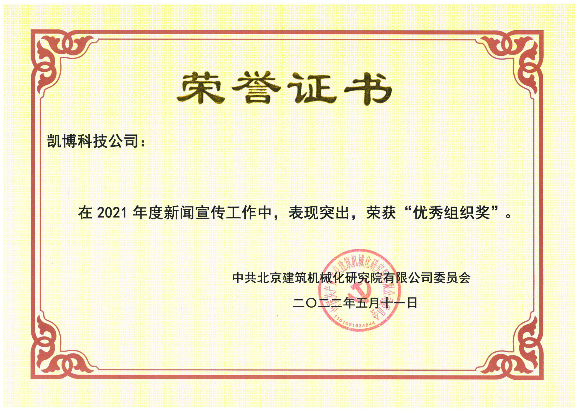 近日,廊坊凱博建設(shè)機(jī)械科技有限公司(以下簡(jiǎn)稱(chēng)“凱博科技”)榮獲北京建筑機(jī)械化研究院有限公司“新聞宣傳優(yōu)秀組織獎(jiǎng)”。