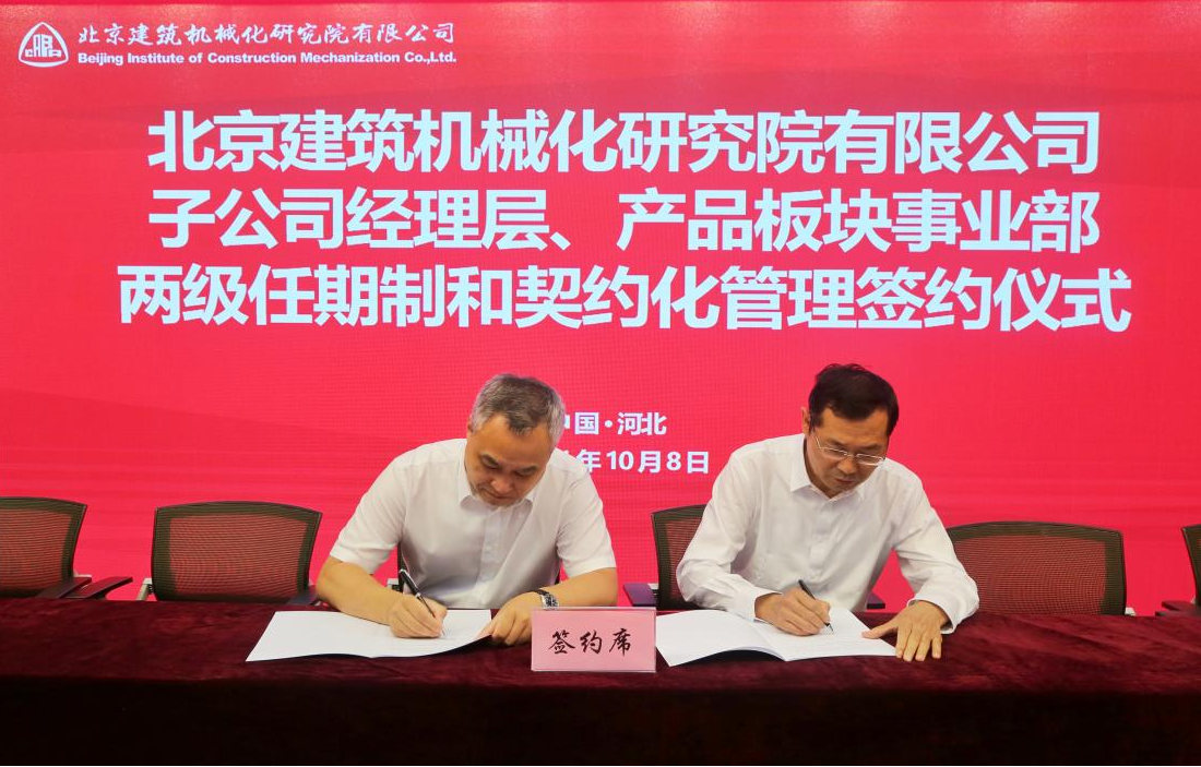 10月8日,北京建機(jī)院舉行所屬子公司廊坊凱博建設(shè)機(jī)械科技有限公司以及公司所屬事業(yè)部兩級經(jīng)理層成員任期制與契約化管理簽約儀式。北京建機(jī)院領(lǐng)導(dǎo)、公司部門以上負(fù)責(zé)人等共計(jì)80余人參加簽約儀式。