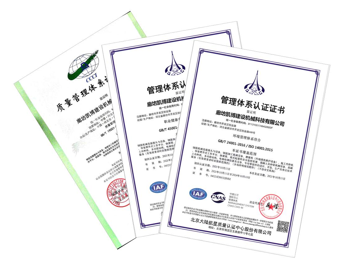 2021年9月28日至9月30日,北京大陸航星質量認證中心股份有限公司審核組對廊坊凱博建設機械科技有限公司進行了ISO14001體系與ISO45001體系認證二階段審核,凱博科技順利通過了本次審核。